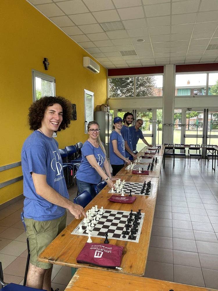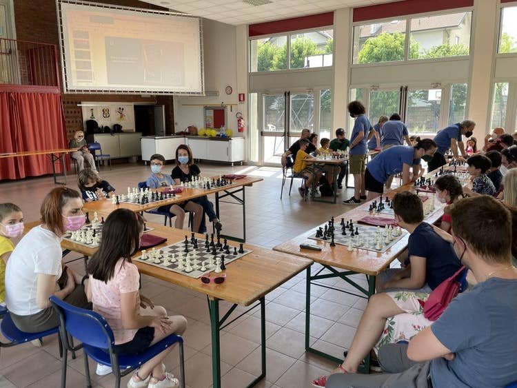 Terminati i giochi all’aperto, la festa ha visto il suo momento più coinvolgente all’interno della sala gioco: gli istruttori hanno deciso di organizzare una simultanea atipica. Non un solo giocatore contro tanti ma tutti gli istruttori hanno sfidato gli allievi supportati da almeno un genitore. Un’unica regola: l’allievo prima di muovere doveva spiegare al suo compagno di gioco (il genitore) quanto accadeva sulla scacchiera e quale “piano”, seppur basilare, mettere in campo.