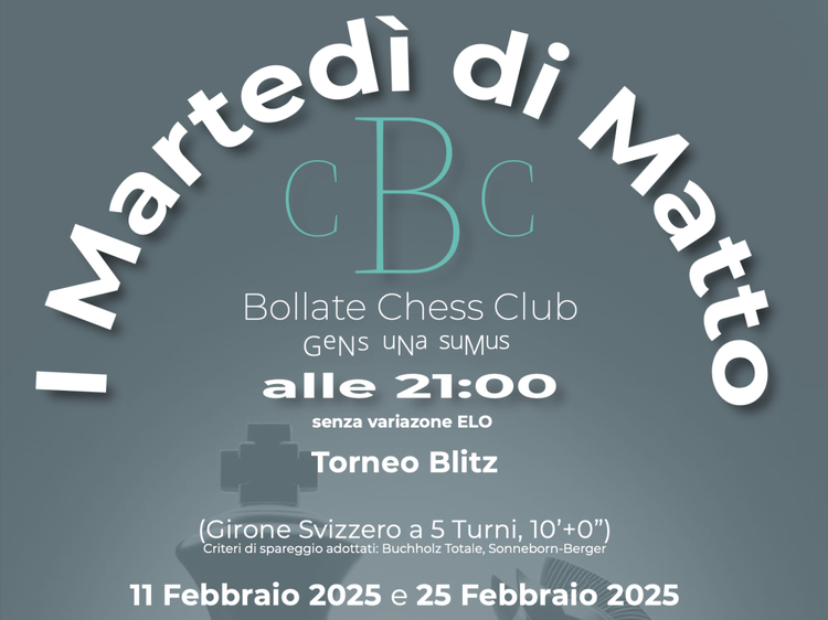 Il Bollate Chess Club è felice di comunicare a tutti la ripresa dei tornei del martedì, senza